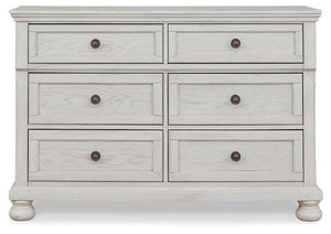 Elegant, timeless furnishings take your bedroom to the next level. Nothing does that better than this dresser with mirror. The antiqued white finish with a wonderful grain texture radiates sophistication, while the dark bronze-tone hardware adds an ornate touch. A hidden pull-out tray behind the top middle drawer puts your small valuables out of sight. Felt-finished top drawers round out the piece for the ultimate tasteful bedroom.