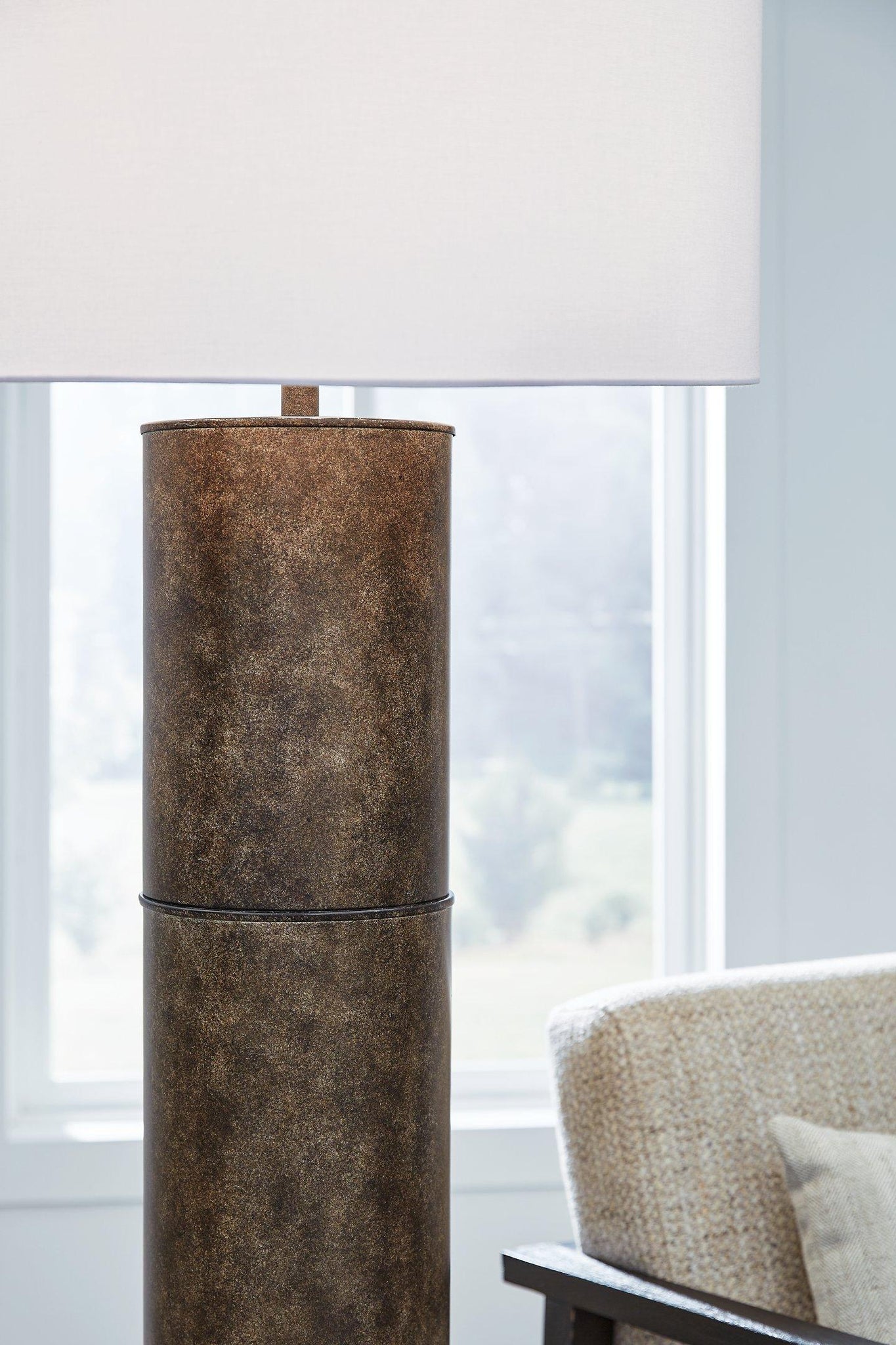 Experience the sophisticated touch of modern design in a whole new light. A dark antiqued bronze-tone finish on this metal floor lamp adds sleek refinement, allowing you to highlight your home with understated elegance. This bright idea is the right idea.